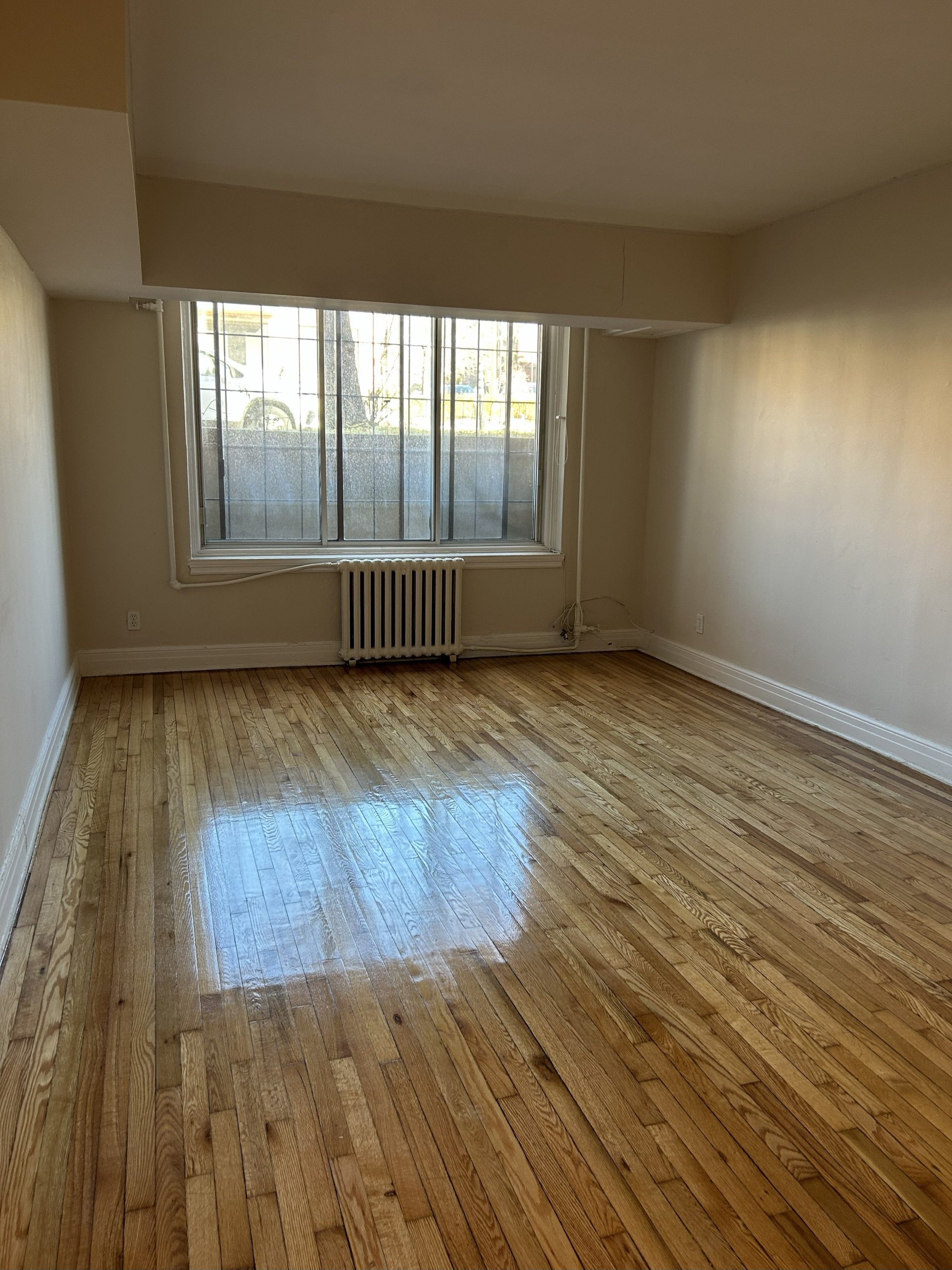 Large semi-basement 3-1/2, (750 sq. ft.), with one bedroom, one bathroom, large bright windows, a dine-in kitchen and a large living room.