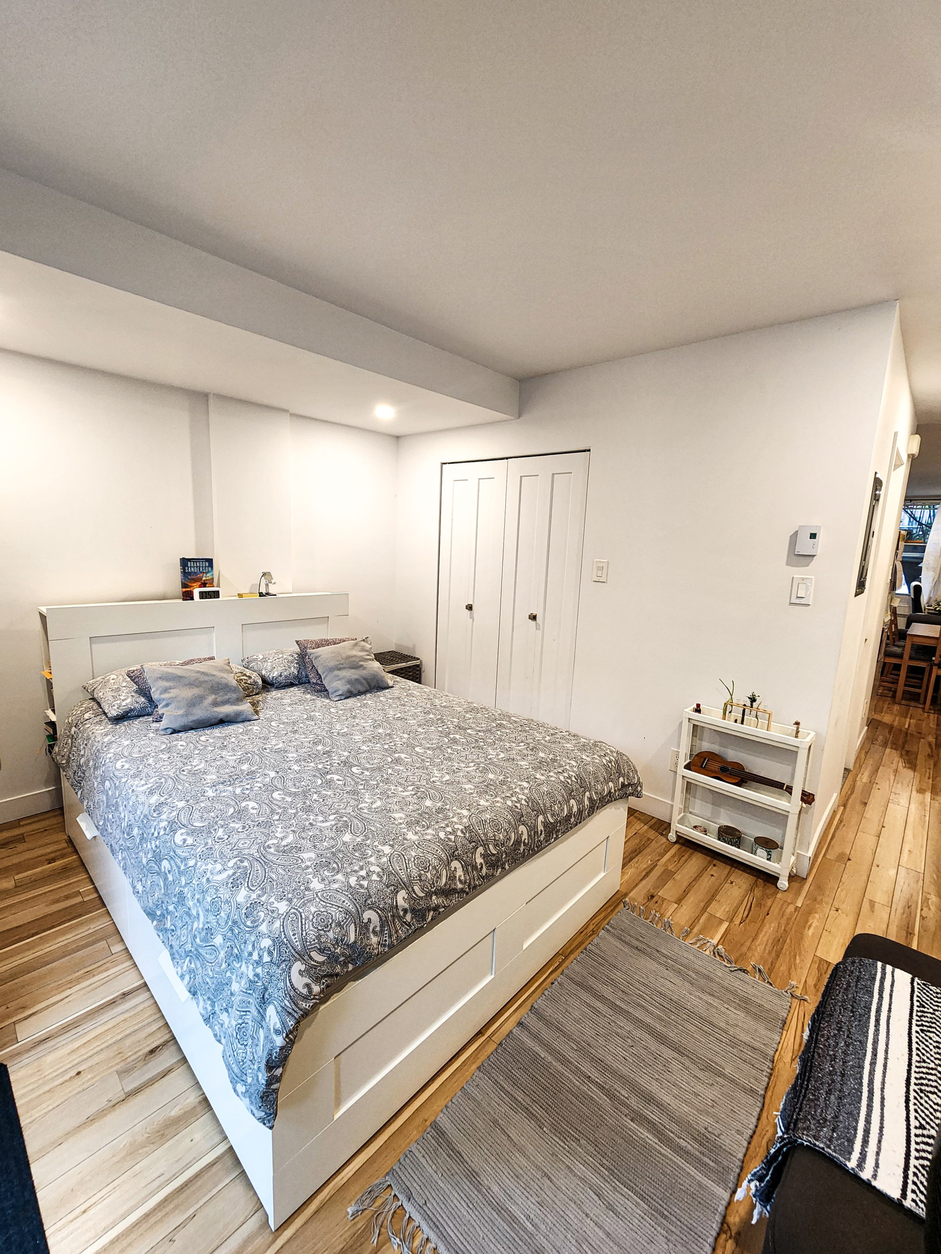 Warm and bright apartment. Bedroom with large wardrobe and patio door. Recessed lighting throughout the apartment. Enjoy a private paved patio at the back and a large grassy yard.