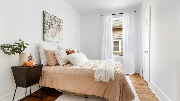 Bright, modern 4 ½ with 2 closed bedrooms, spacious living room, and modern kitchen. Each bedroom has a closet, plus A/C and air exchange unit.