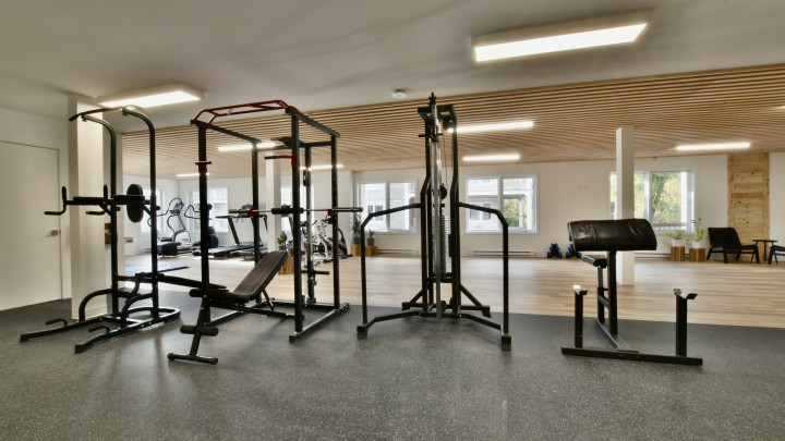Gym complet avec divers professionnels de la santé sur place ainsi que des entrainements de groupes.