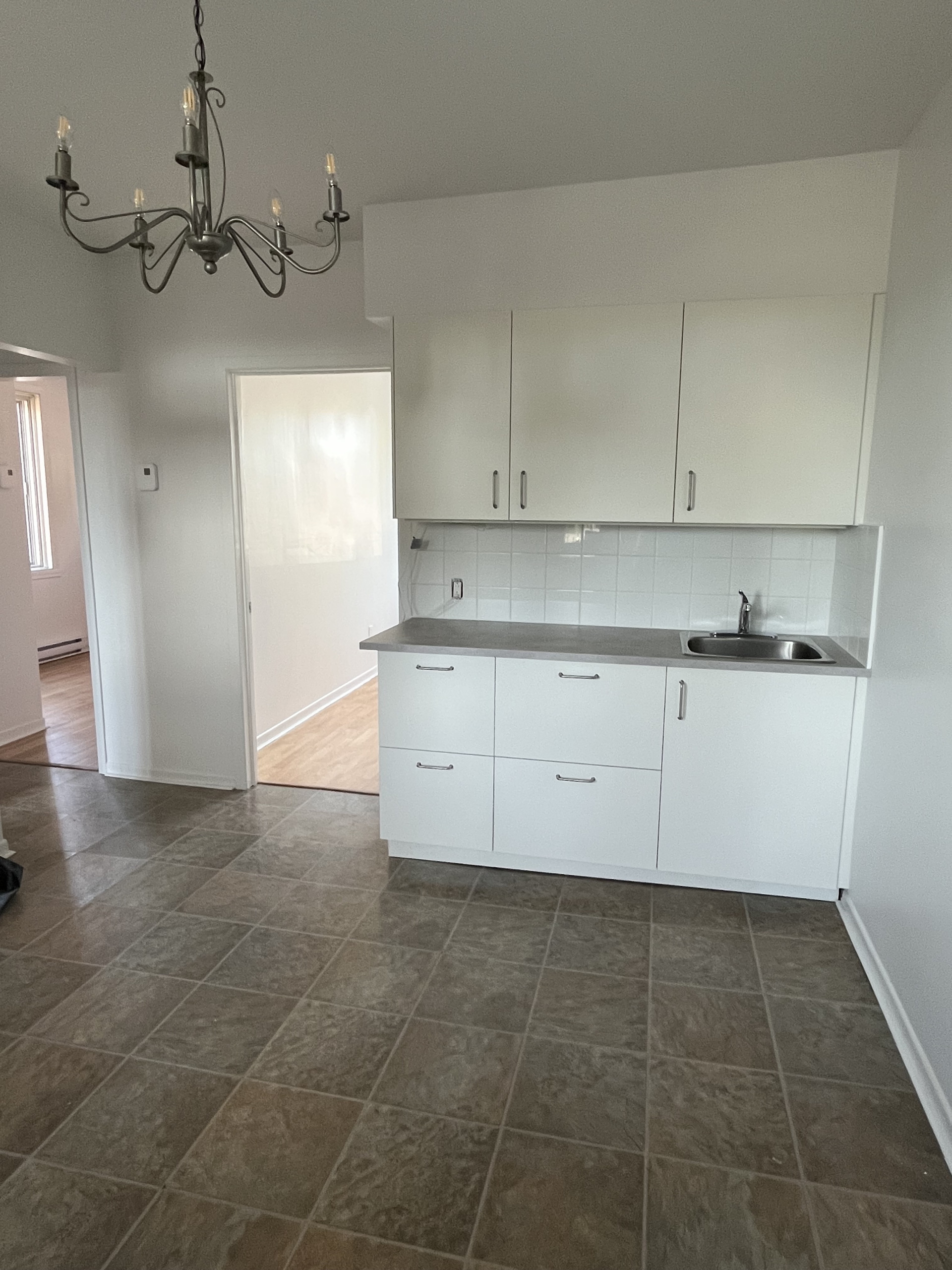 Petit 4 1/2, Idéal pour une personne seule ou un couple sans enfant. Presqu'entièrement rénové. Salle de bain neuve, plancher du salon refait, nouvelles armoires dans la cuisine et la salle de lavage et tout repeint. Électricité non-incluse (environ 100$ par mois). Propriétaire au rez-de-chaussée. Les chats acceptés. Pas de chien.