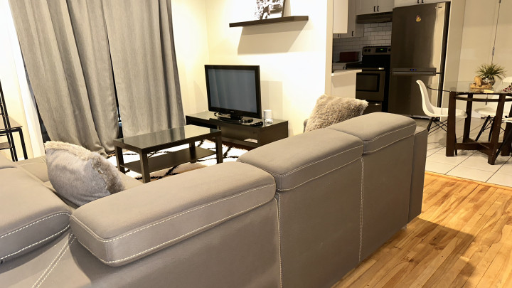 Découvrez cet appartement moderne et meublé de 2 chambres à coucher - idéal pour une location de court, moyen ou long terme (31 jours et plus). Offrant tout le confort nécessaire pour un séjour agréable, ce logement comprend un salon spacieux, 2 chambres confortables, 1 salle de bain , avec une cuisine entièrement équipée ainsi qu'une laveuse-sécheuse.