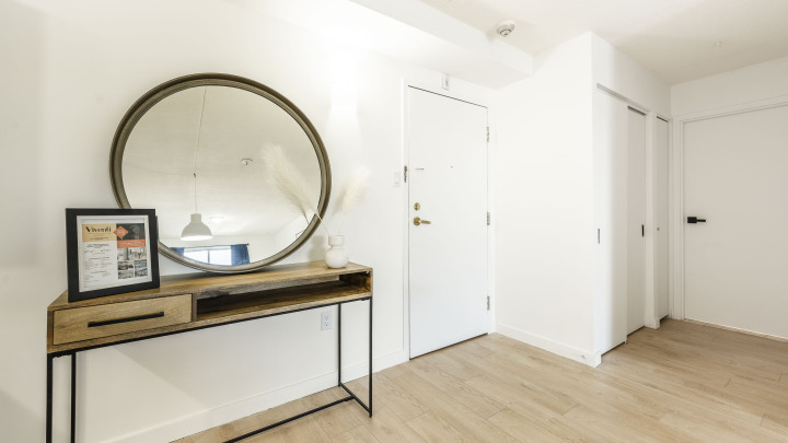 Bright and comfortable 2-bedroom (4 ½) apartment of approximately 850 square feet, including 1 outdoor parking space (snow removal included in winter), located in Laval-des-Rapides, Laval, just steps from Concorde metro and train station, and close to Highway 15.