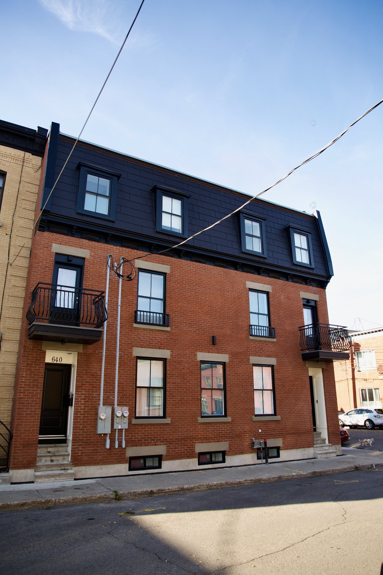 Newly rebuilt Townhouse style appartement on 2 levels. Living, dining, kitchen and powder room on 2nd floor with 2 balconies. 3rd floor with 2 bedrooms, 2 bathrooms (one ensuite) and 3rd balcony. Storage in the basement. Own entrance. Great location close to many parks, public transport, cafes and restos. Easy street parking.