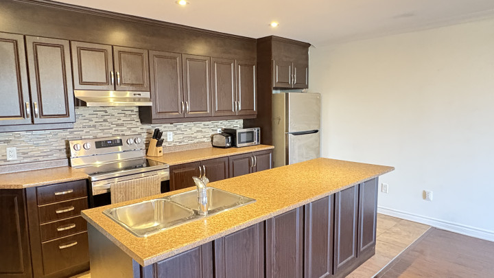 Welcome to this renovated, light-filled apartment where every detail has been designed for comfort and elegance. The open-concept living and dining rooms stand out with beautiful hardwood floors and refined arches that add a unique touch of character. The modern kitchen, featuring brand-new stainless steel appliances and a spacious island, serves as the heart of the living space. Two inviting bedrooms and a fully updated bathroom with contemporary finishes complete the home. For added convenience, a washer and dryer are located in the basement. Outside, a charming back patio and a large shared backyard provide the perfect setting to enjoy sunny days.