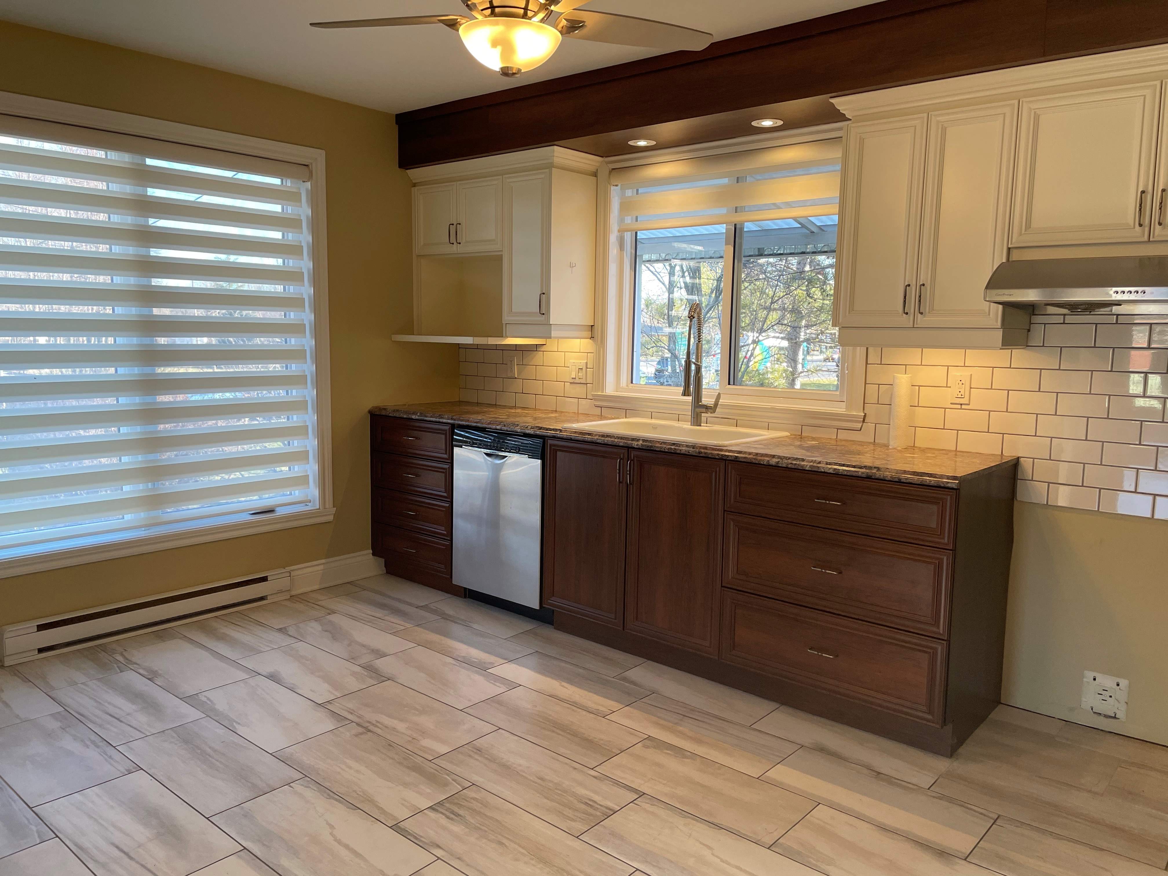 Renovated 2 bedroom semi-detached house on one level with a huge amount of storage in basement available for rent in the west-island.