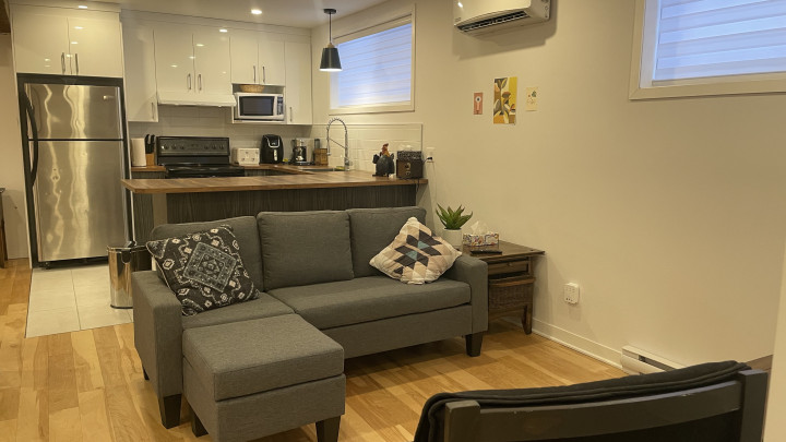 Two-bedroom (4.5) ground-floor apartment, available immediately, in a very quiet area of the Ville-Marie neighbourhood, with washer and dryer hookups and a large backyard. Perfectly located in Ville-Marie, a 2-minute walk from Parc des Faubourg and close to all amenities. Only 650 meters from Papineau metro station (green line). Monthly lease, with occupancy reclaimed in July 2027.