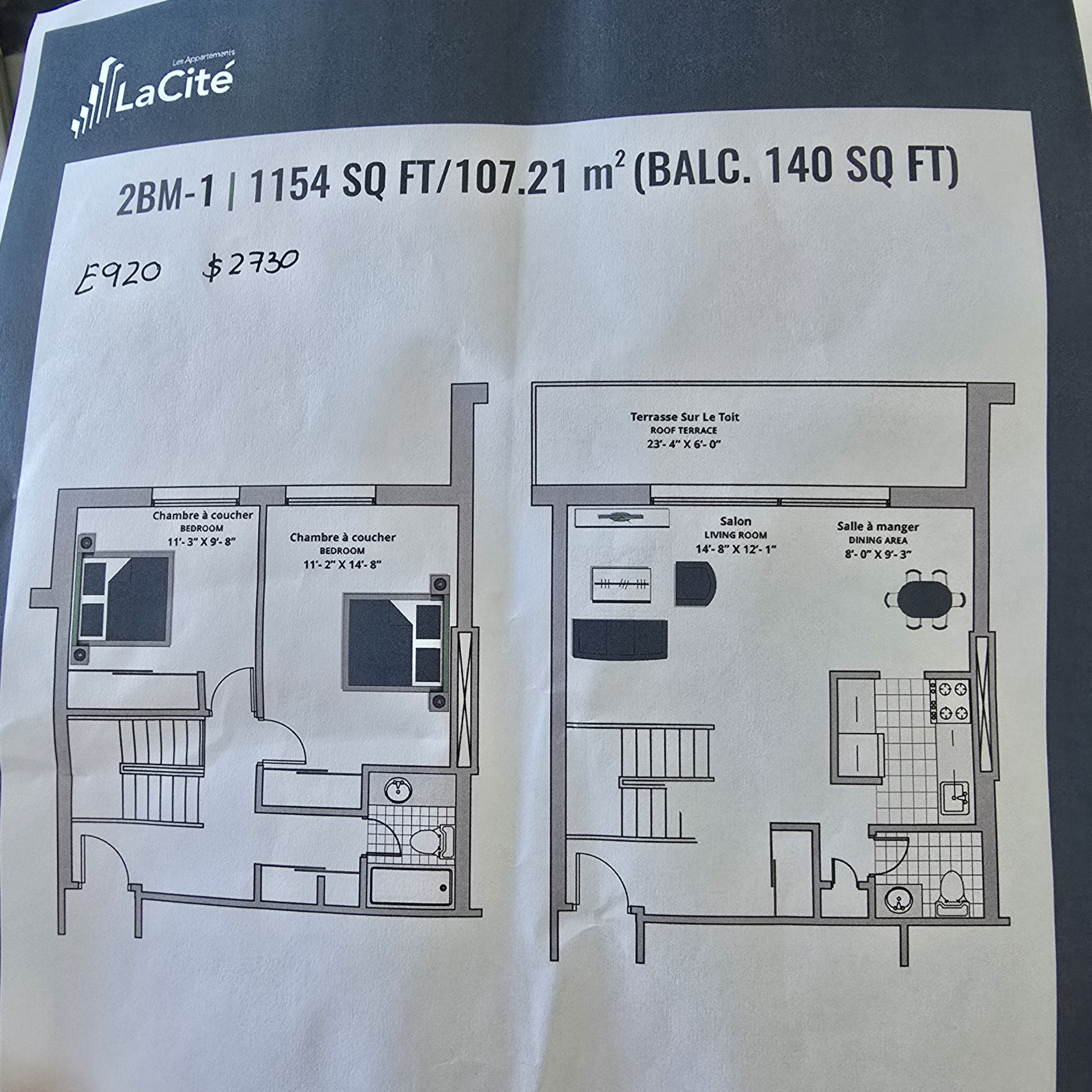Beautiful two-storey 4½ (duplex) located on the 9th and 10th floors of La Cité Residences, right in the heart of downtown Montreal — just steps away from McGill University.