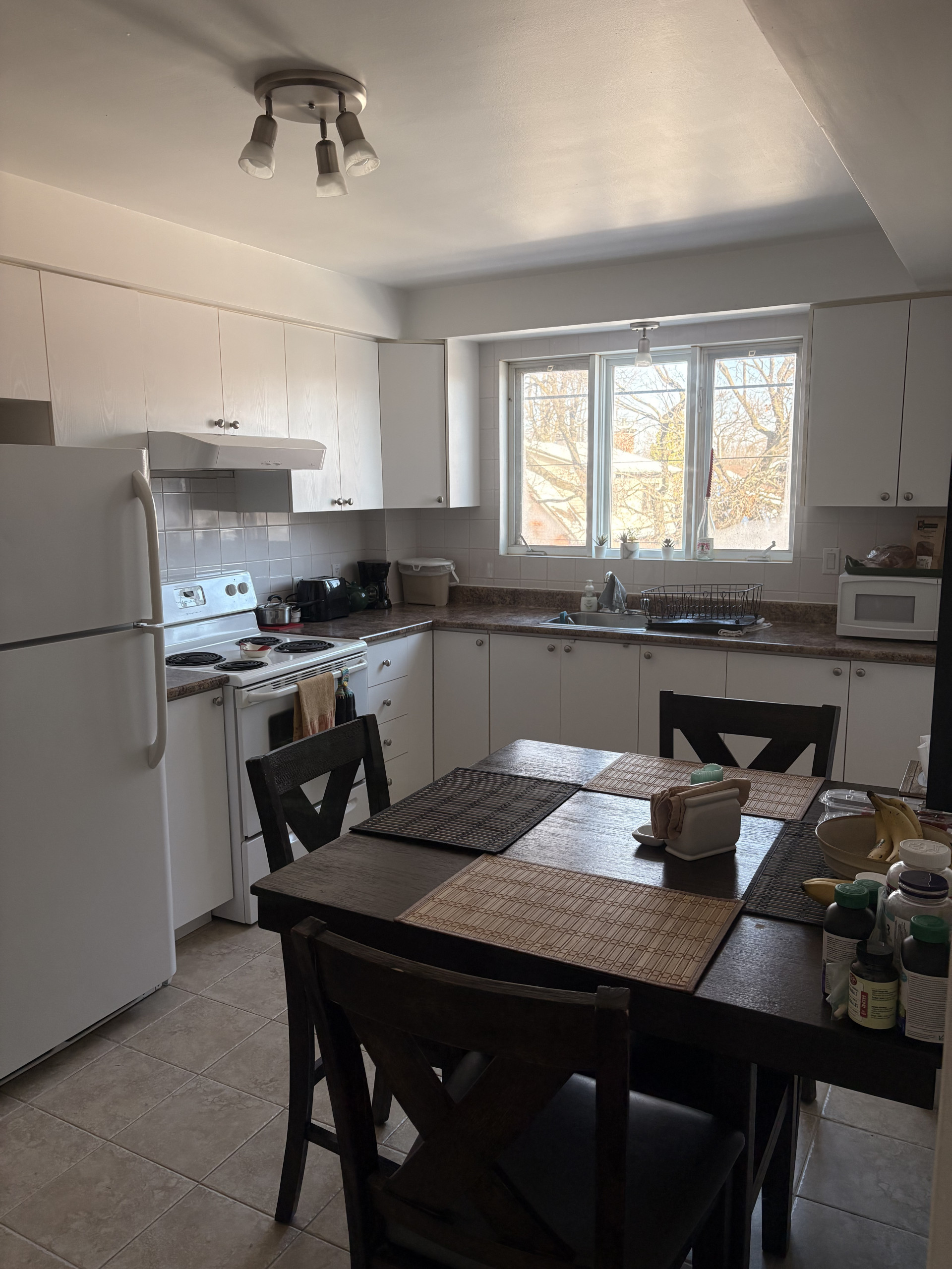 4 1/2 apartment for rent at 4595 Rosemont, across from the Maisonneuve Park community gardens, between Pie IX and Viau, at the corner of 31st Avenue, where the bike path runs.