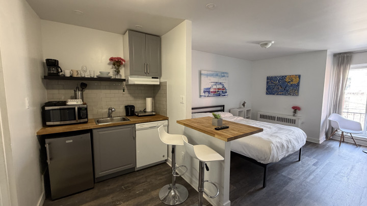 ROCABELLA - Beautiful Two bedrooms condo ; High-end kitchen, Bedroom with walk-in that connects to a gorgeous bathroom. Enjoy the elegance of living in one of the most prestigious buildings. Steps from all services, metro stations, restaurants, shopping, Ste-Catherine's street. On-site.. SECURITY GUARD 24/7, VALET SERVICE 7/7 included,