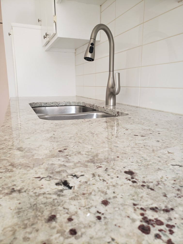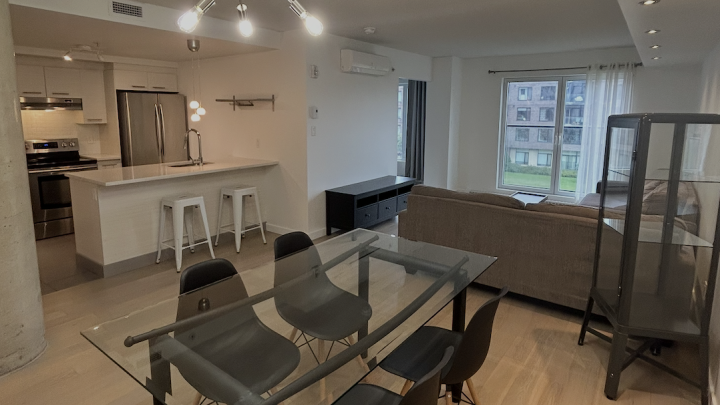 5 1/2 Rénové Chauffage Eau Chaude Inclus. Disponible à partir du 1er juillet 2026. Comptoir de cuisine en granite. L'appartement bénéficie de la lumière naturelle abondante.