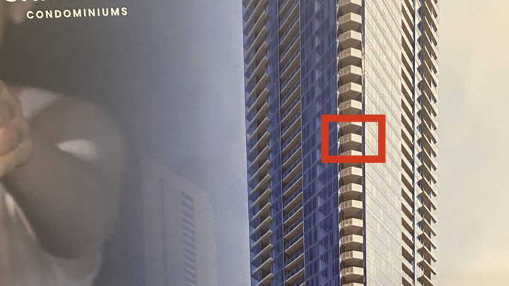 Grand balcon arrière avec rangement et un petit balcon à l'avant de l'immeuble.