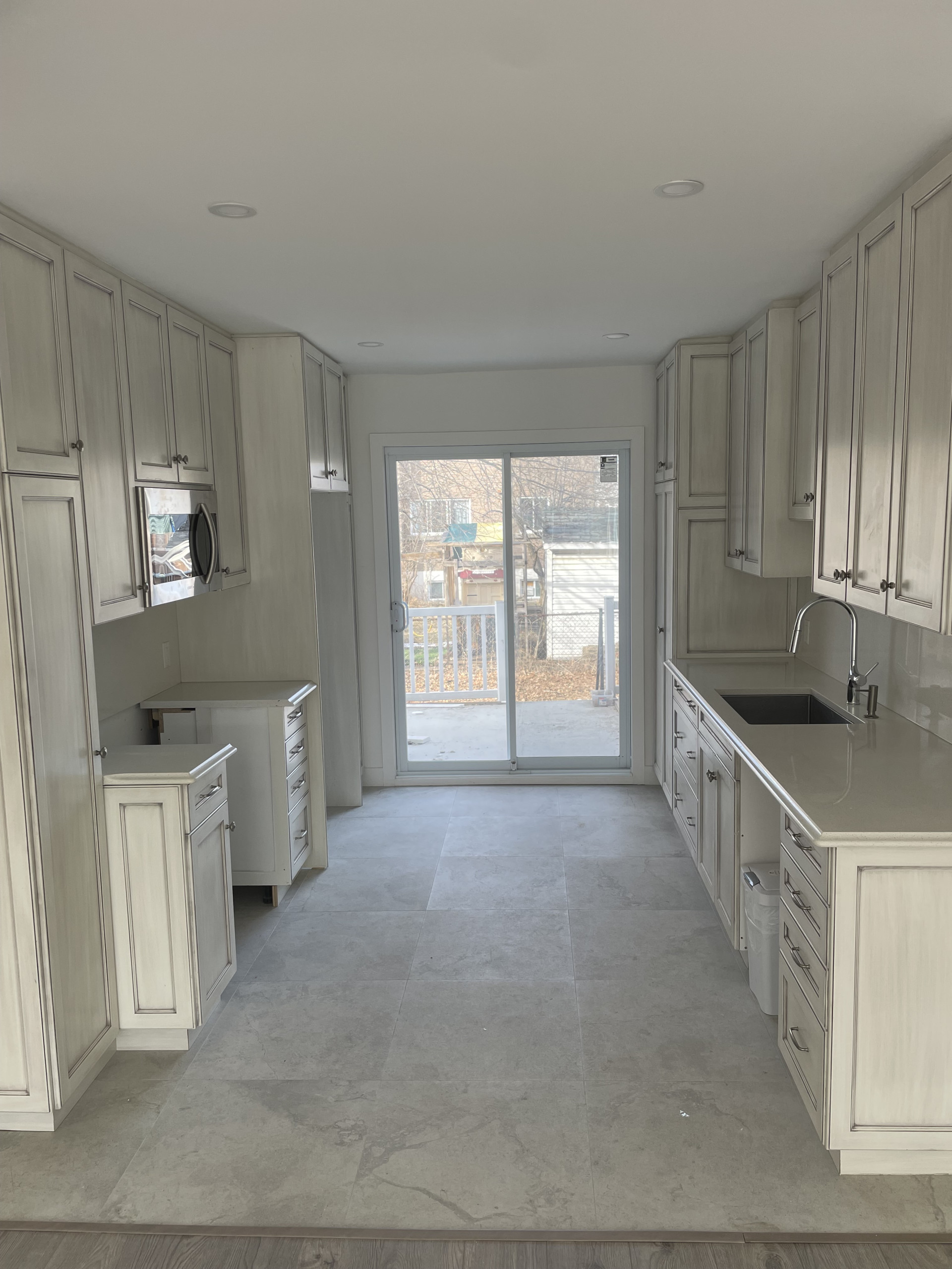Confort avec l’air-climatisé et Plancher chauffant dans la cuisine ainsi que la Hotte micro-ondes fournie.
