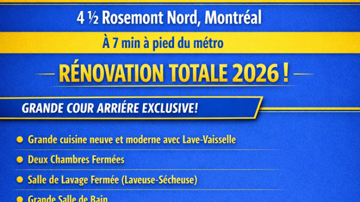 Beautiful, sunny, comfortable 5 1/2 apartment for rent in Rosemont, on the 2nd floor of a duplex. Available from July 1, 2026. Private outdoor parking available for an additional fee (to be discussed).