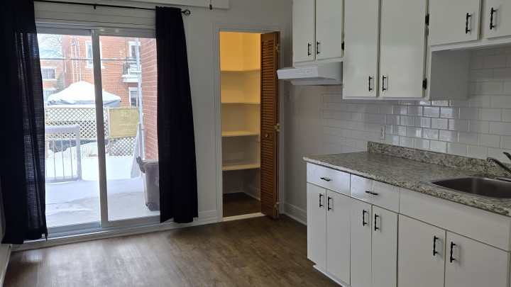 Très lumineux, porte patio dans la cuisine, situé au 3e etage