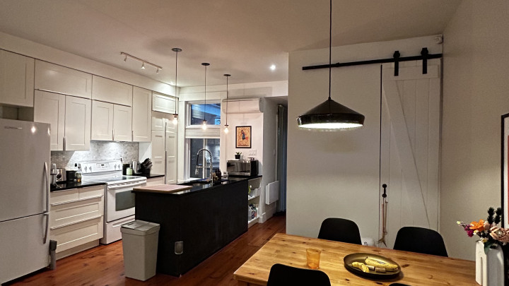 Beau, propre, tranquille et fraîchement repeint, vous serez les premiers à profiter de ce tout meublé /tout équipé au goût du jour. Superficie totale de 1600 pc (+/- 148 mc) dotée de hauts plafonds, de chaleureuses boiseries en pin et de planchers de bois franc partout.