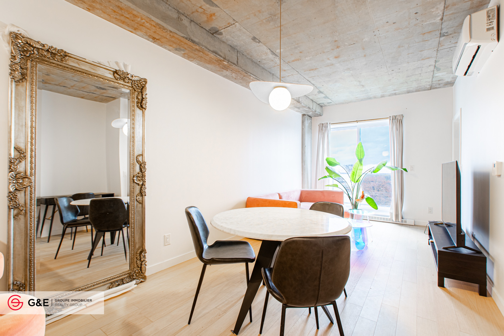 Stunning condo bathed in natural light, featuring a cozy bedroom with a walk-in closet. Beautiful bathroom with a bathtub and shower, plus convenient storage space. Enjoy a rooftop terrace with Napoleon barbecues and landscaped grounds. Quiet and secure building. Ideally located 1 minute from Langelier metro station, close to grocery stores, parks, the Saint-Donat arena, and schools.