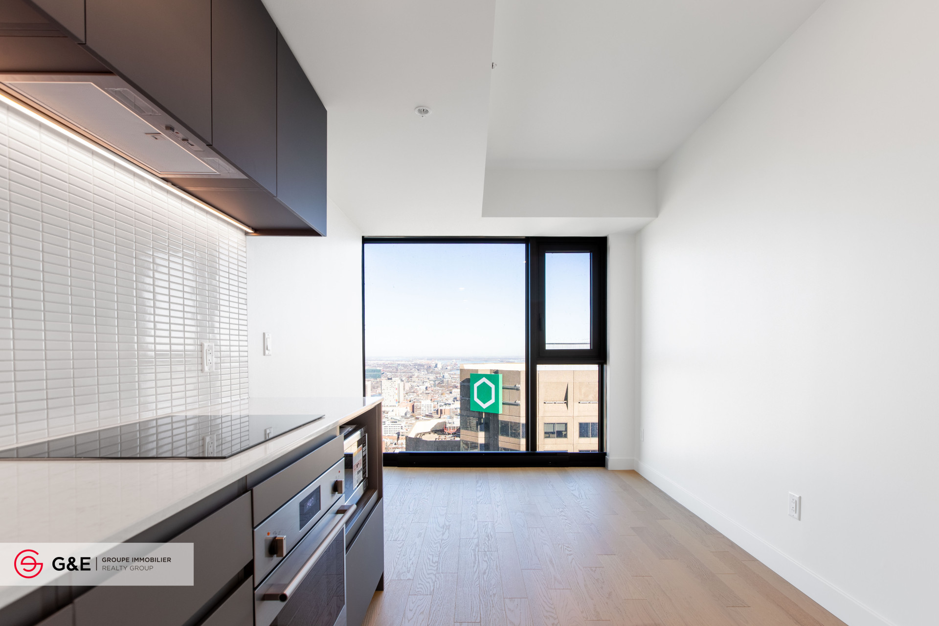 Experience luxury in a brand new studio on the 49th floor of Maestria T2, in Montreal's vibrant Quartier des Spectacles. Enjoy stunning views and a prime location near Place des Arts. This landmark building offers easy access to restaurants, supermarkets, schools, and the metro. Indulge in amenities like a golf simulator, cinema room, gym, indoor and outdoor pools, and a Sky-bridge walkway. Embrace the best of urban living in the heart of the city.