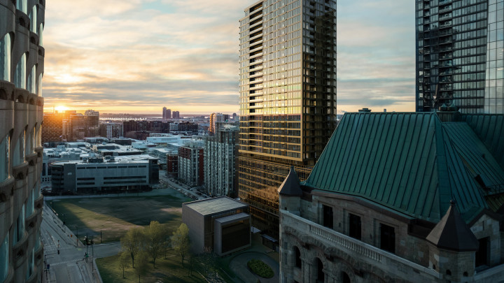 Explore the modern charm of a fully furnished 1-bedroom apartment in the prestigious Humaniti project at 1020 rue de Bleury, 29th floor, nestled in the heart of downtown Montreal.