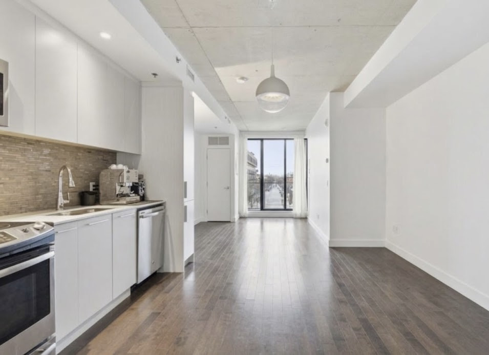Superbe unité moderne située dans un projet haut de gamme, incluant un garage, dans un secteur exceptionnel à la jonction de Villeray, du Mile-Ex et de la Petite Italie.
