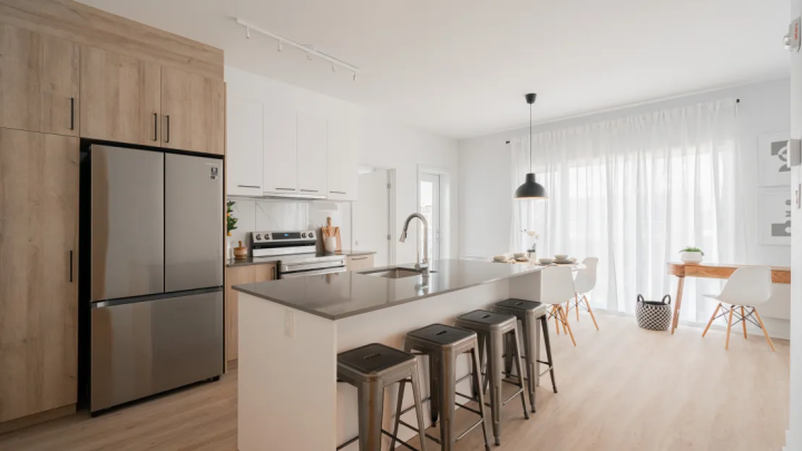 • 5 électroménagers inclus (réfrigérateur, cuisinière, lave-vaisselle, laveuse, sécheuse)