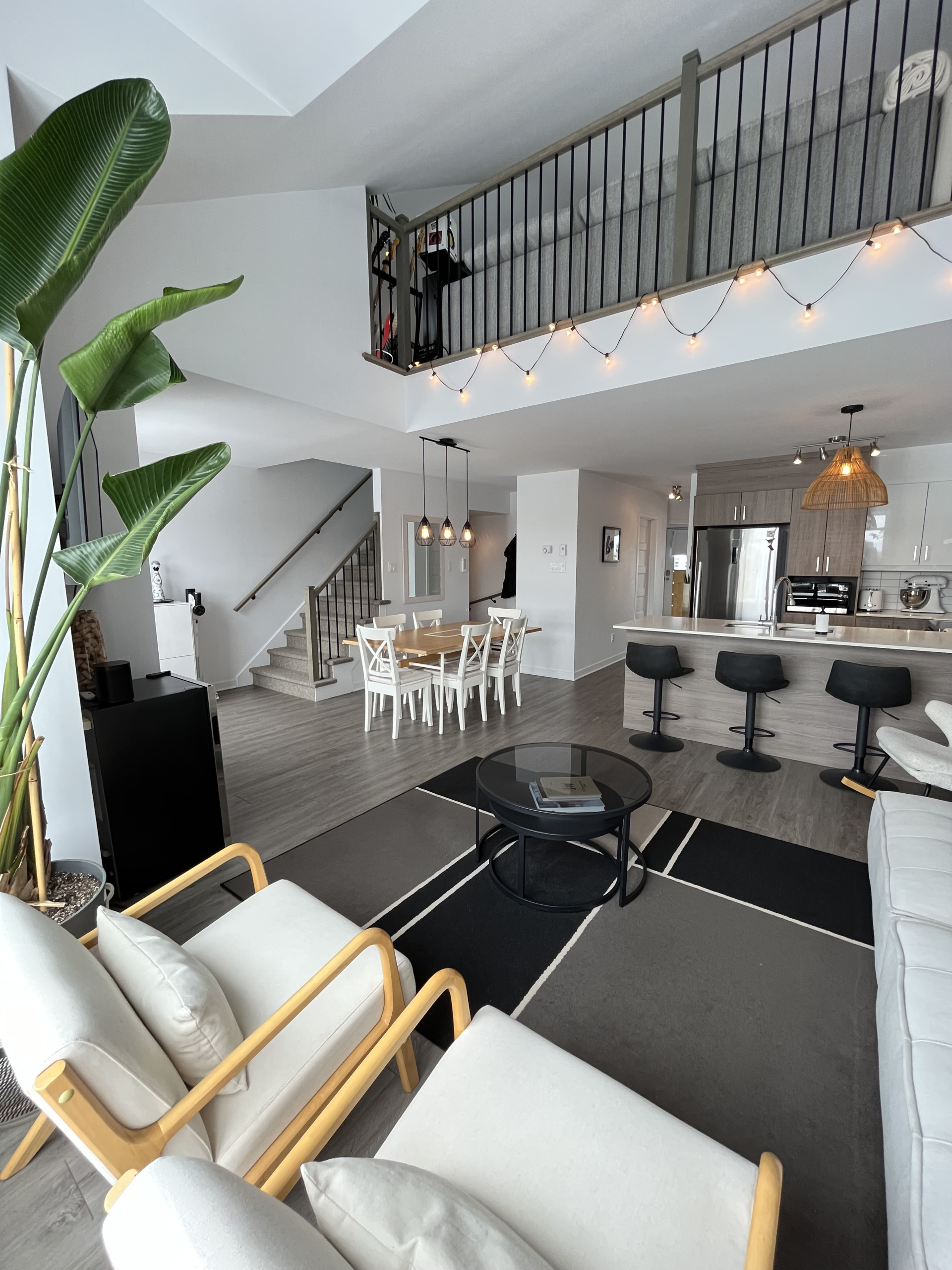 Beautiful, modern, and bright 3-bedroom apartment in the peaceful and sought-after Champfleury area of Ste-Rose, Laval! This unit offers two closed bedrooms and a mezzanine, a full bathroom, and a washroom.