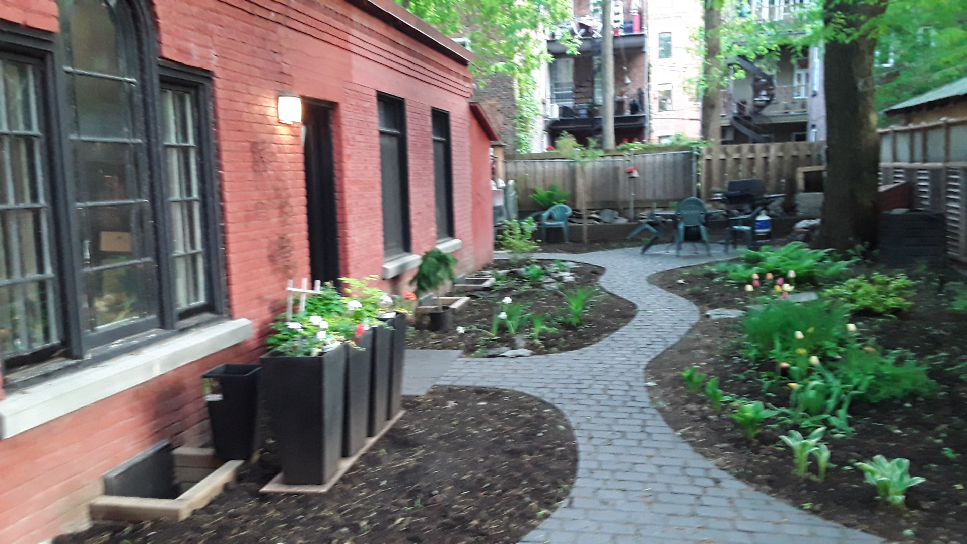 Situé dans une arrière cour, tranquille et verdoyante.