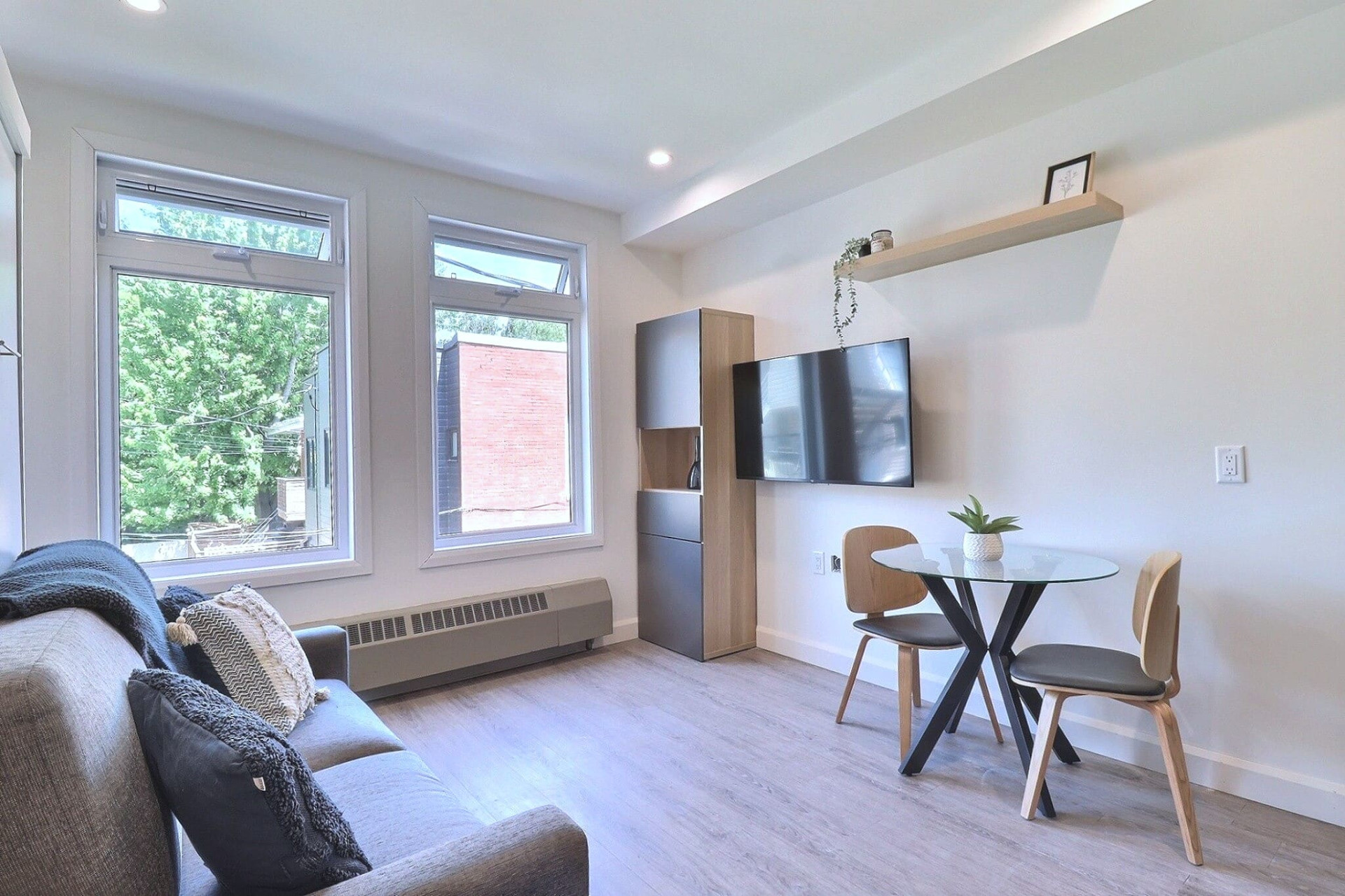 Disponible dès maintenant, cet immeuble entièrement rénové propose des logements Studio ou 2 1/2 ENTIÈREMENT MEUBLÉS. À l’intersection de deux rues, ces logements allient modernité, clarté et emplacement stratégique. Idéal pour ceux qui recherchent un mode de vie urbain, pratique et bien connecté.