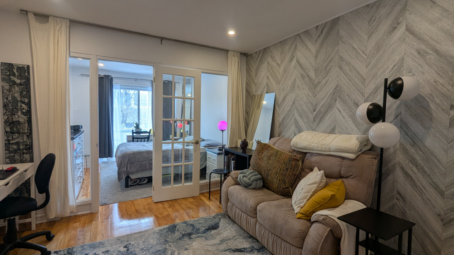 L’appartement est situé à environ 400m du métro Préfontaine (ligne verte) avec vue sur le Pont Jacques-Cartier. Vous pourrez même voir les feux d’artifices l’été à même le balcon! Également situé dans Ville-Marie, à quelques minutes du centre-ville et près des Shop Angus. L’appartement se trouve au 2ième étage.