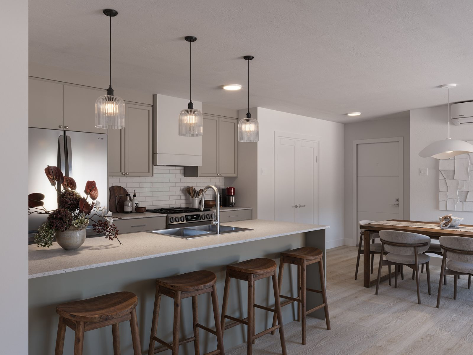 Un style unique et des espaces qui répondront à vos attentes en matière de confort et de qualité. Que ce soit pour la porte-patio de 8 pieds, les comptoirs de cuisine en quartz ou la salle de lavage indépendante, vous serez conquis.