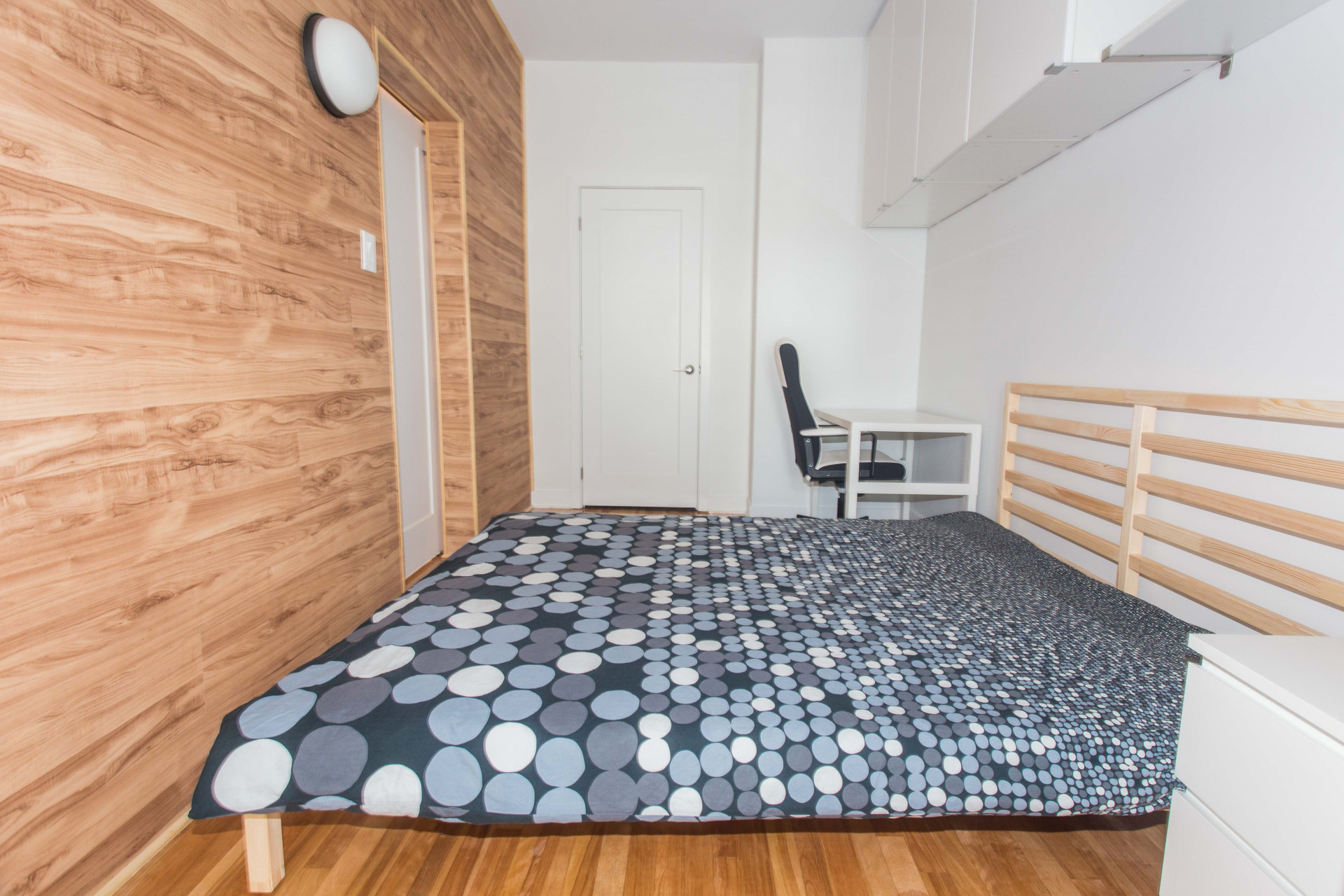 -1 chambre avec lit/matelas queen, bureau/chaise d'ordinateur et table de chevet