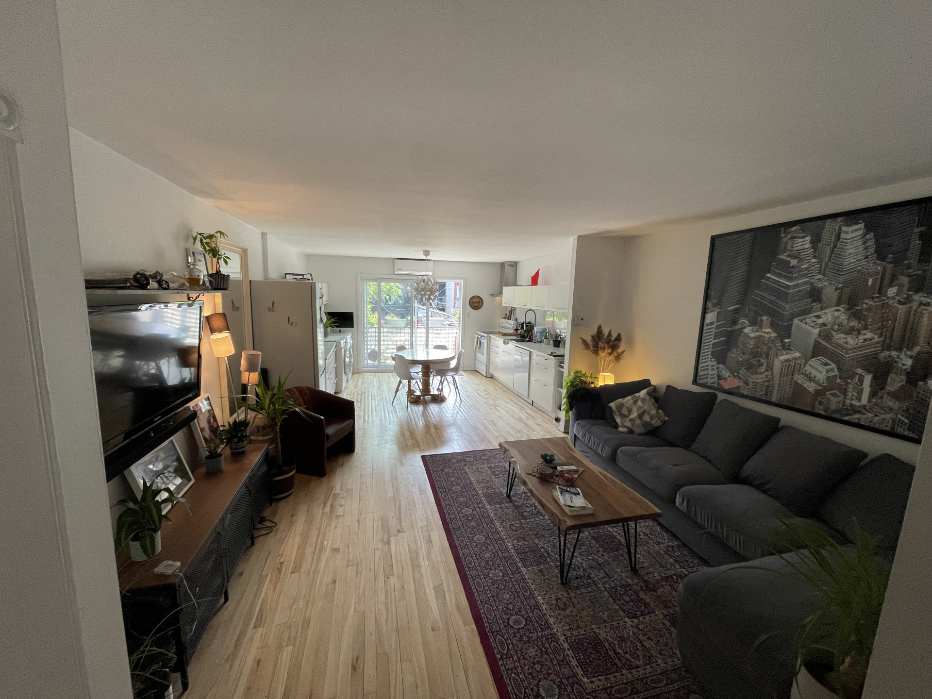 Magnifique 3 1/2 lumineux planchers bois francs une chambre fermée aire ouverte. Entièrement rénové, air climatisé thermopompe 1 balcon, une remise. 5 électros grande porte-patio. 2 eme étage. Devant piste cyclable. A l’ouest de la rue Viau. Stationnement disponible , avec frais supplémentaire.