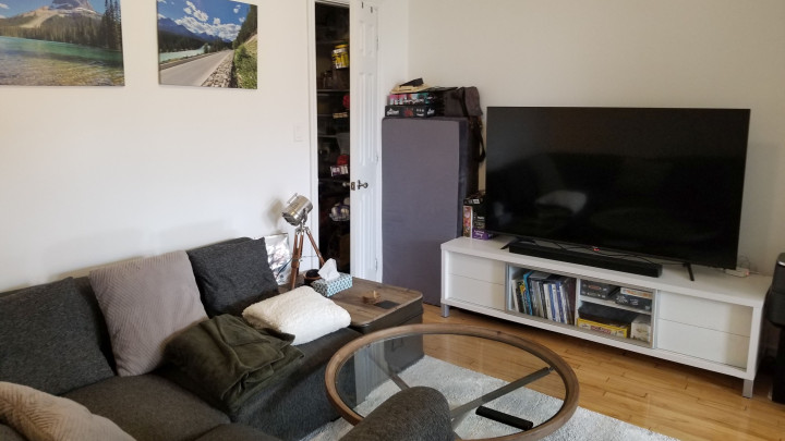 Beau 31/2 complètement rénové situé au semi sous sol d' un immeuble de 8 logements très bien entretenu, 1 chambre fermée, grande cuisine avec installation pour un lave-vaisselle, salle a manger et salon a aire ouverte, entrée laveuse et sécheuse (superposées) plancher de bois et de céramique. Disponible a partir dès maintenant