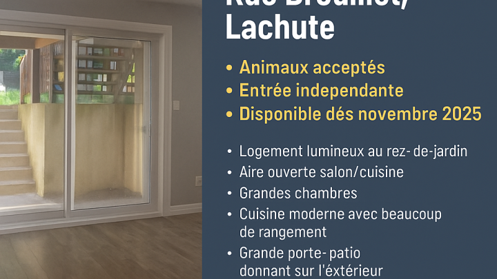 PLUSIEURS LOGEMENTS EN CONSTRUCTION 1 MOIS GRATUIT. Caractéristiques: Comptoirs en quartz ,Dosseret moderne, Grande fenestration pleine hauteur, Insonorisation supérieur, lumineux, Ascenseur,1 espaces de stationnement 2e à 50$/mois, immeuble sécurisé, gestion professionnelle, caméra de sécurité, chiens acceptés, Wi-Fi inclus, possibilité d'électroménager inclus pour 100$/mois. 3½ : 1 200 $ à 1 300 $ / mois 4½ : 1 500 $ à 1 600 $ / mois 5½ : 1 750 $ / mois. Les grandeurs, superficies et mesures indiquées sont fictives et peuvent varier selon l'avancement réel du chantier. Veuillez nous contacter au XXXXXXXXXXNOUVEAU PROJET LOCATIF -- LIVRAISON JUIN 2026Découvrez ce magnifique développement composé de deux immeubles neufs de 32 logements chacun, pour un total de 64 unités réparties sur 4 étages.Plusieurs modèles de 3 ½, 4 ½ et 5 ½ sont disponibles, avec des prix qui varient selon l'étage et l'orientation.3 ½ entre 1200$-1300$4 ½ entre 1500$-1600$5 ½ à 1750$Ces logements modernes offrent une combinaison parfaite de qualité, de confort et d'esthétisme contemporain.Caractéristiques et avantages :* 1 mois gratuit* Insonorisation supérieure* Comptoirs de quartz* Dosseret inclus* Grandes fenêtres pleine hauteur* Construction écoénergétique* Wi-Fi inclus* Ascenseur* Caméras de sécurité* Immeuble sécurisé* Gestion professionnelle* Chiens acceptés* 1 stationnement inclus (2e à 50 $/mois)* Électroménagers disponibles (100 $/mois)* Terrain paysagé et asphaltéChaque unité est pensée pour offrir un espace de vie lumineux, fonctionnel et durable, idéal pour une clientèle recherchant un logement neuf, propre, moderne et sans compromis.*Les prix sont ajustés selon l'étage et le type d'unité.Les superficies affichées sont fictives, car plusieurs modèles sont encore en construction. Les grandeurs exactes seront confirmées au fur et à mesure de l'avancement du chantier.INCLUSIONSwi-fiEXCLUSIONS--