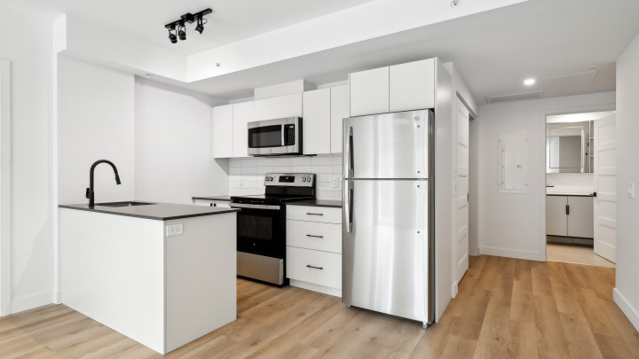 L'unité 506, de style loft à aire ouverte, vous séduira dès l'entrée par ses plafonds de 10 pi 5, ses colonnes de béton, ses planchers de bois franc et sa luminosité exceptionnelle grâce à ses grandes fenêtres.