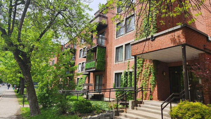 -L’appartement est au semi sous-sol d’un bel immeuble avec entrée sécuritaire.