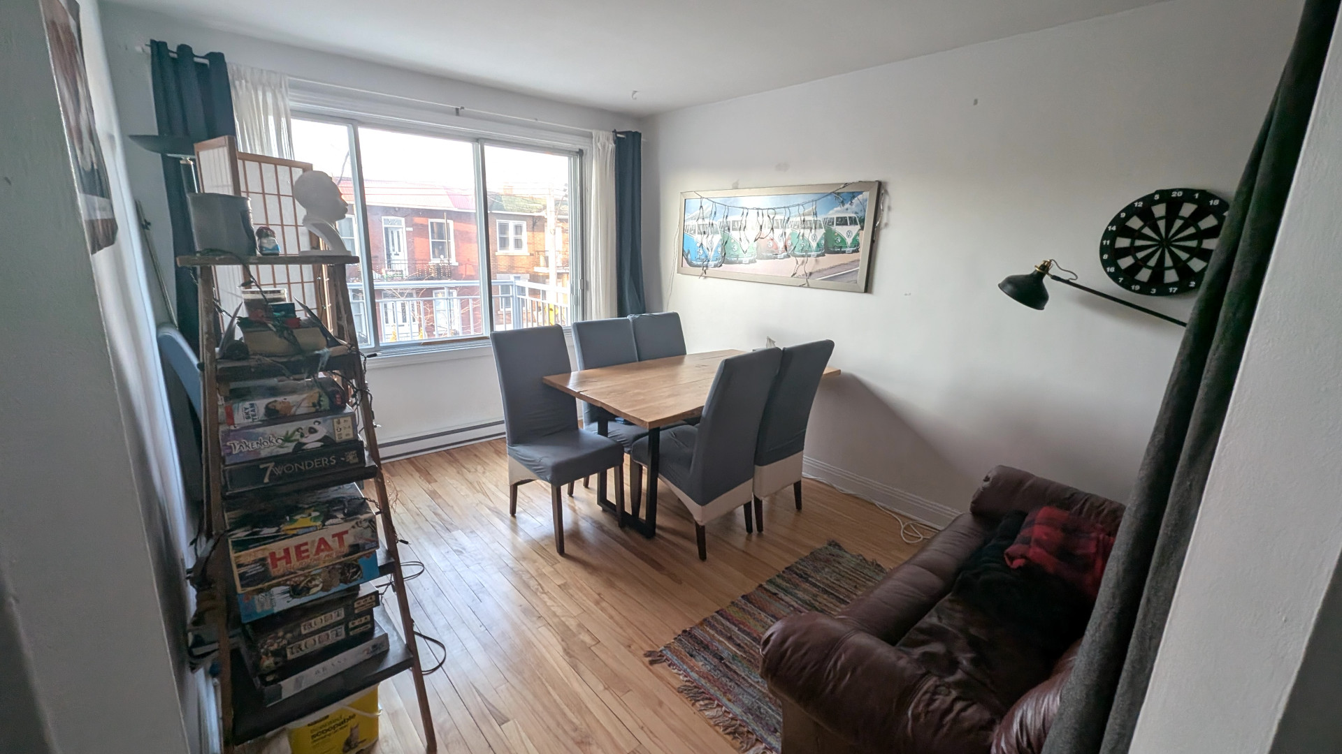 L'appartement possède une salle de bain avec grande douche en céramique, une cuisine qui donne sur un balcon arrière, un grand salon double lumineux incluant une chambre ouverte, plancher de bois franc partout sauf la salle de bain qui est en céramique. Grand garde-robe pour la chambre, garde-robe d'entrée et garde-manger.