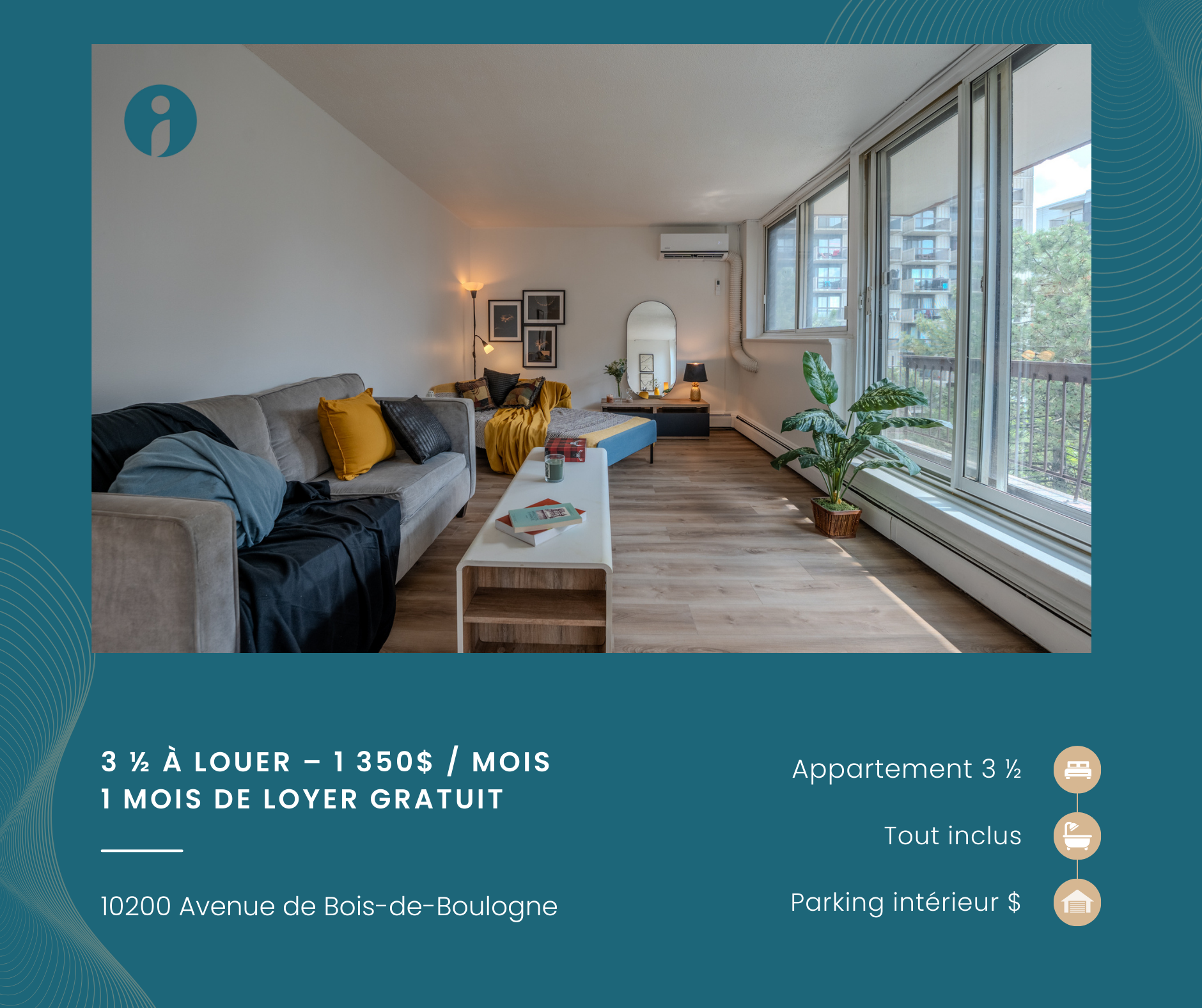 • Appartement 110 – 1 350 $ / mois