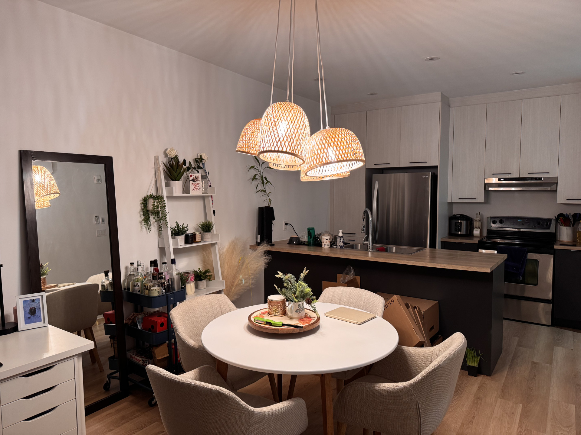 Appartement lumineux, au goût du jour, avec une belle cuisine ouverte sur le salon.