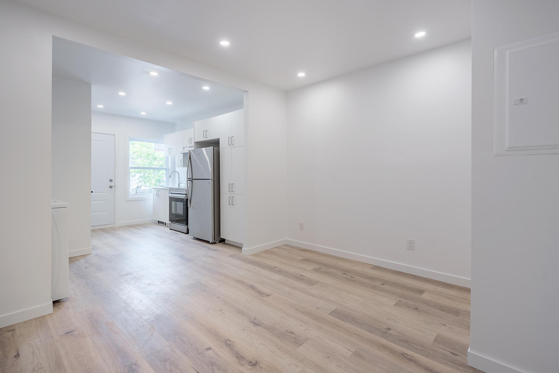 - Cuisine moderne avec tous les électroménagers inclus (frigo, cuisinière, lave-vaisselle, laveuse & sécheuse)