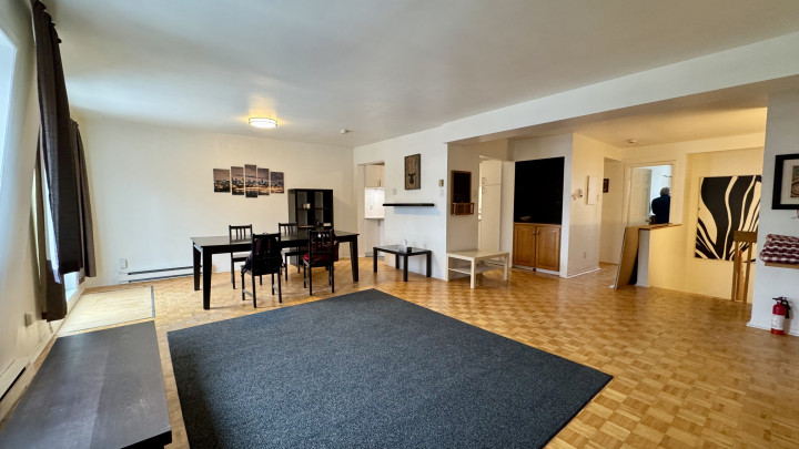 Ce magnifique appartement lumineux et entièrement meublé vous invite à découvrir un espace de vie exceptionnel. Dès votre entrée, vous serez séduit par le salon et la salle à manger spacieux, inondés de lumière naturelle, créant une atmosphère chaleureuse et accueillante. La cuisine moderne, équipée d'un coin-repas, d'un vaste plan de travail et de tous les appareils nécessaires, est idéale pour préparer vos repas en toute convivialité. Les deux grandes chambres offrent un espace de repos paisible, tandis que le généreux balcon arrière constitue un véritable havre de paix pour se détendre en plein air.