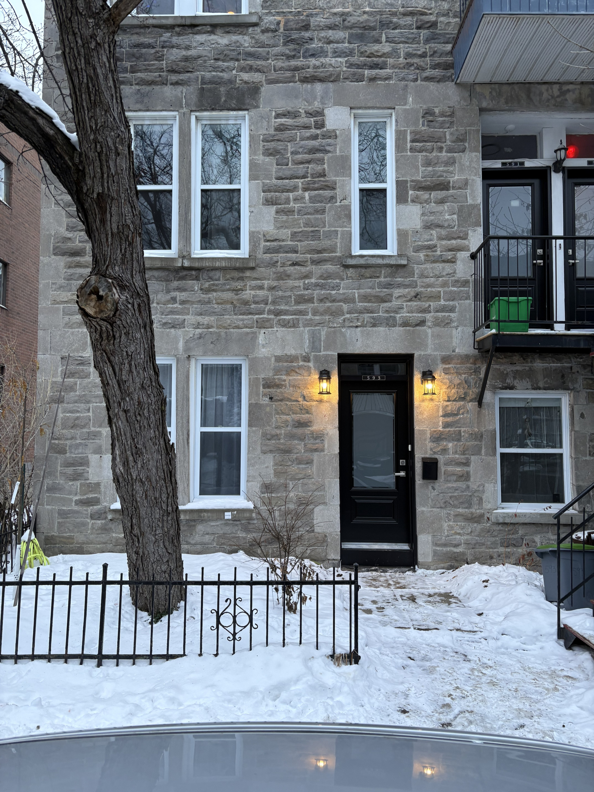 Grand 4 1/2 avec au 2e grand salon très bien éclairé en avant. Deux chambres fermées, cuisine, espace pour laveuse-sécheuse. Grande galerie couverte de la largeur de l'immeuble à l'arrière, Celle-ci donne sur une ruelle sans automobiles. Électricité à la charge du locataire. Pas d'animaux, excepté un maximum de deux chats. Non-fumeur à l'intérieur.