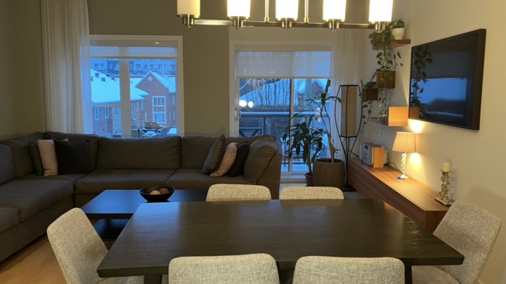 Près des écoles primaires, parc, piscine, transport en commun. À 2 minutes des autoroutes 20, 720, facile d’accès. Pas d’animaux. Enquête de crédit et référence