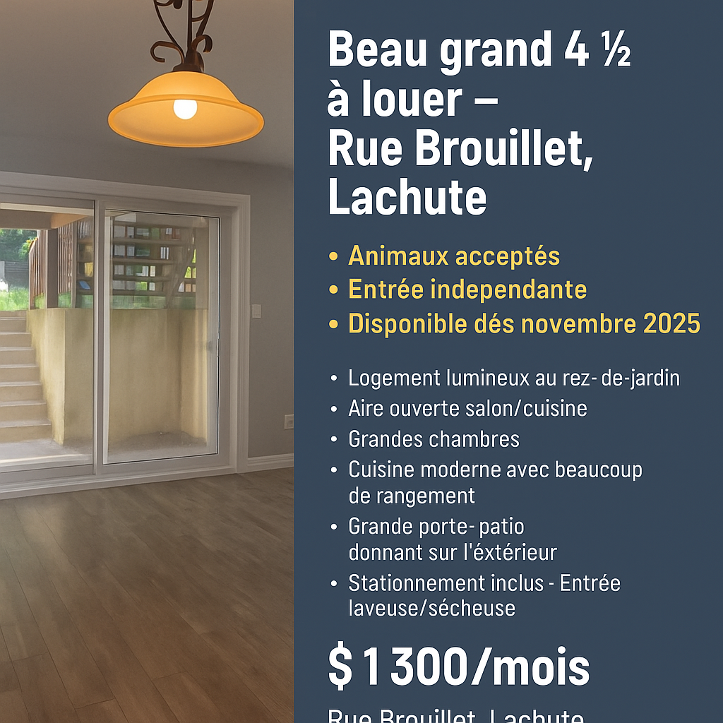 À louer – Superbe 4 ½ moderne sur la rue Brouillet, Lachute