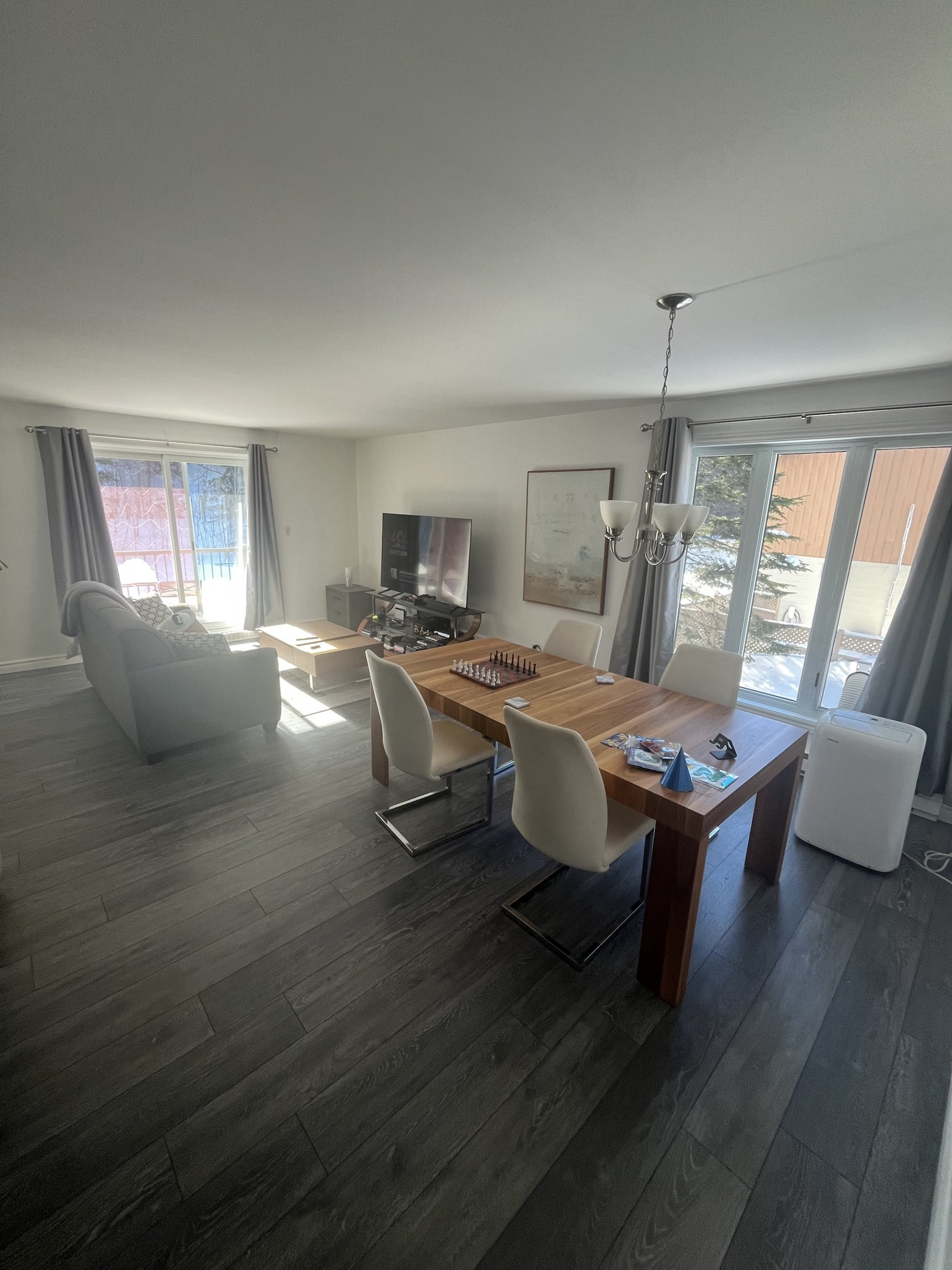 -Salon, salle à manger et cuisine à aire ouverte