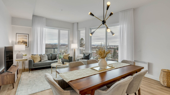 Venez découvrir ce magnifique et lumineux 4 1/2 situé à Saint-Romuald, offrant une vue exceptionnelle sur le fleuve Saint-Laurent et un cadre de vie moderne et confortable.