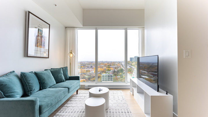Unité de coin élégamment aménagée et entièrement meublée, située au 38e étage du Rocabella I, au coeur du centre-ville de Montréal. Comprend une chambre avec walk-in et une salle de bain munie d'une baignoire autoportante et d'une douche vitrée indépendante, ainsi que des plafonds de 10 pieds, des électroménagers encastrés haut de gamme, laveuse et sécheuse dans l'unité et un grand balcon accessible depuis la chambre et le salon. Présentant des finitions luxueuses, des luminaires encastrés et de grandes fenêtres pleine hauteur, elle bénéficie d'une abondante lumière naturelle et offre une vue imprenable sur la ville et le Mont-Royal.Bienvenue au 1300 Boul. René-Lévesque Ouest apt. 3803, Montréal (Ville-Marie) à louer!Unité de coin élégamment aménagée et entièrement meublée, située au 38e étage du Rocabella I, au coeur du centre-ville de Montréal.Caractéristiques de l'unité :* Une chambre avec walk-in et une salle de bain munie d'une baignoire autoportante et d'une douche vitrée indépendante.* Plafonds de 10 pieds.* Électroménagers encastrés haut de gamme.* Laveuse et sécheuse dans l'unité.* Grand balcon accessible depuis la chambre et le salon.* Finitions luxueuses et luminaires encastrés.* Fenêtres pleine hauteur offrant une abondante lumière naturelle et une vue imprenable sur la ville et le Mont-Royal.Commodités de l'immeuble:* Sécurité 24/7.* Piscine intérieure.* Sauna et jacuzzi.* Gym entièrement équipé.* Terrasses avec BBQ.* Salle de cinéma.* Salon de billard.* Salle de conférence.Emplacement de choix:* À proximité du métro Lucien-L'Allier et du métro Bonaventure.* À distance de marche du Centre Bell, de la Gare Centrale et du Quartier Concordia.* À quelques pas du Provigo, des restaurants, cafés, supermarchés et commerces du centre-ville.* Accès facile aux autoroutes principales et au transport en commun.INCLUSIONSÉlectroménagers: réfrigérateur, cuisinière, lave-vaisselle, laveuse et sécheuse. Entièrement meublé.EXCLUSIONSHydro, câble et internet.