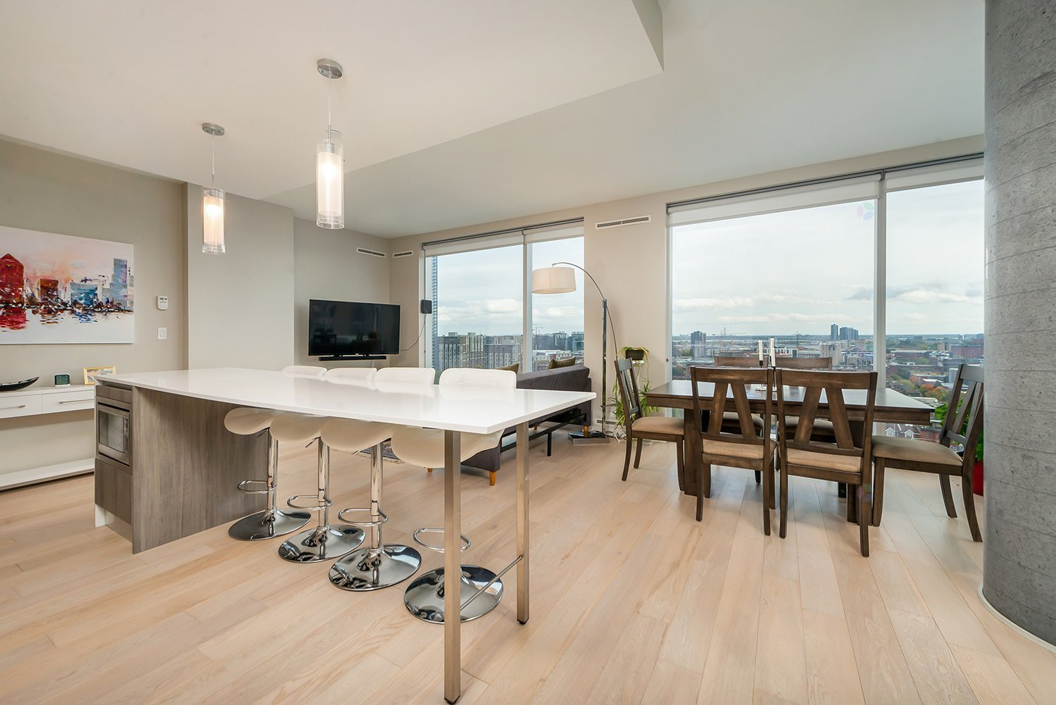 Disponible le 1er juillet -- Nous vous dévoilons cette spectaculaire unité de 2 chambres à coucher et 2 salles de bain avec une finition haut de gamme. Surplombant la ville et la montagne et situé au coeur du centre-ville de Montréal, ce projet luxueux est à quelques pas de toutes les commodités. À proximité des grands magasins, des boutiques, des restaurants branchés, des épiceries, des parcs, des transports en commun et bien plus encore! Les audacieuses tours à «blocs décalés» de YUL et 17 maisons de ville uniques sont l'incarnation scintillante du summum de la vie urbaine de luxe à Montréal.