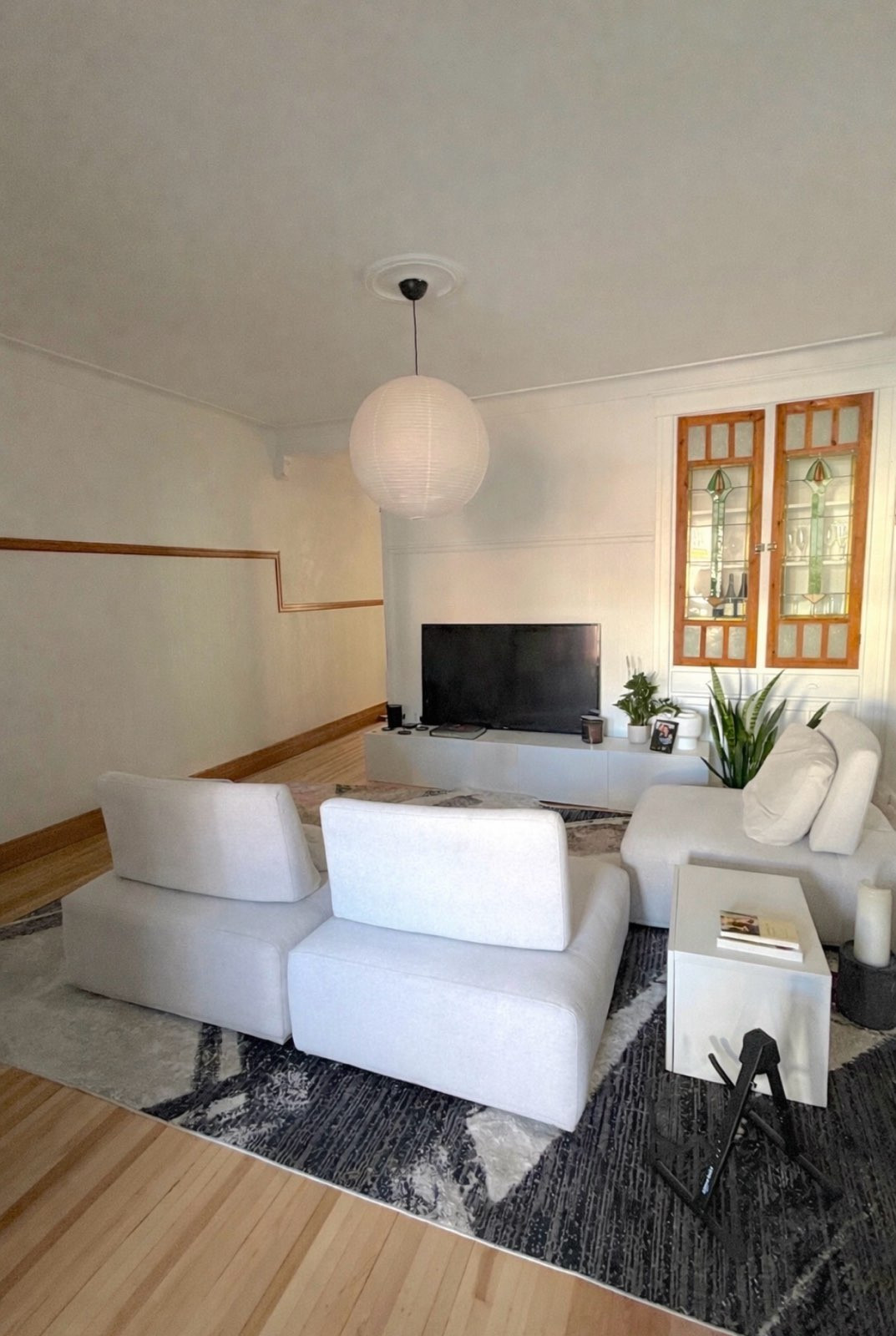 Appartement rénové avec cachet, plafonds de 9 pieds de hauteur et plancher de bois franc fraîchement vernis. Frais peint Tranquille.
