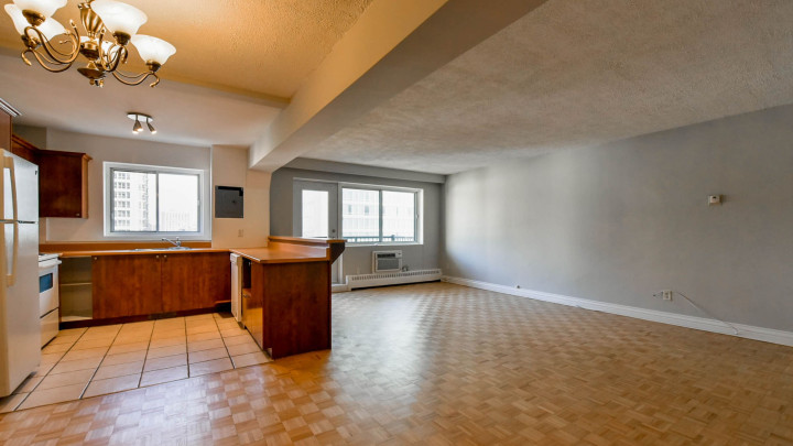 CARACTÉRISTIQUES: 2 chambres fermées dont 1 qui est très spacieuse qui peut inclure un espace bureau, salon, salle à manger, cuisine et deux balcons.